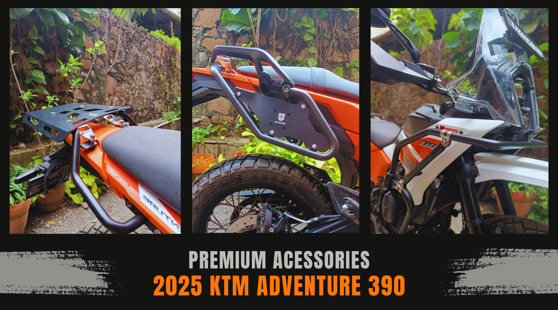 Best & High-Quality Accessories for the New 2025 KTM Adventure 390 from the house of SS Motocorp that will elevate your motorcycle.